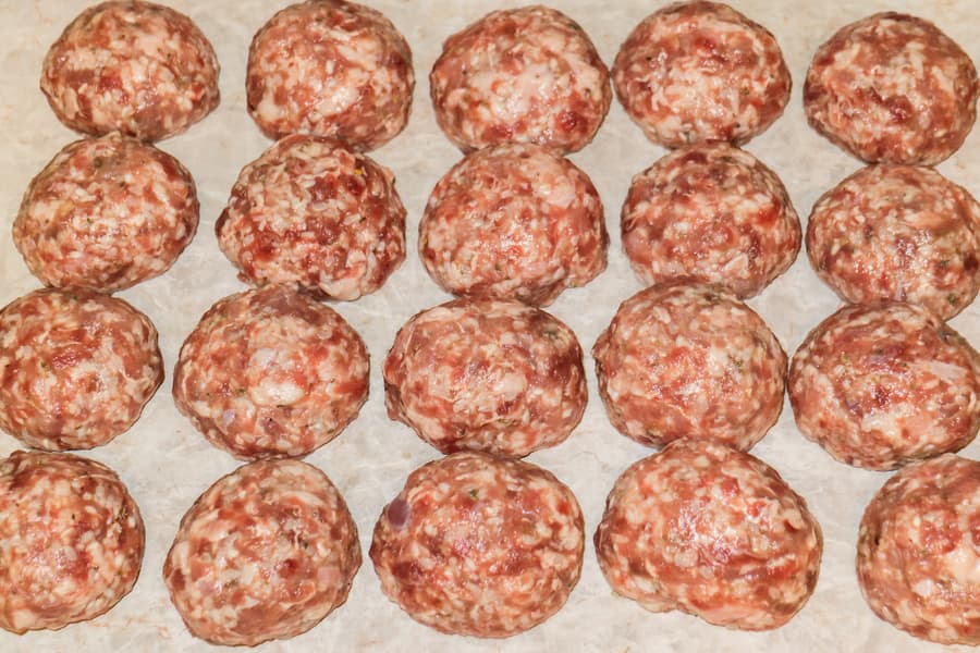 Из большей части фарша с рисом накрутили шариков — будущих ёжиков.