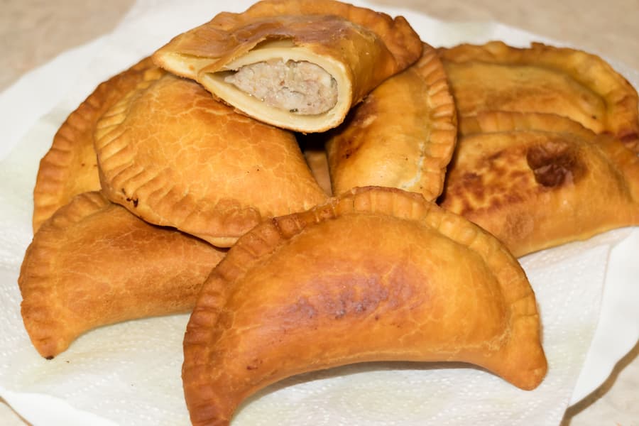 Поверхность теста быстро подсыхала — влаги в нем недостаточно. Что и продемонстрировали готовые чебуреки: вместо тонкой легкой и пузырчатой оболочки для ароматного сочного фарша мы получили толстый слой теста. Правда, вкусного теста, к тому же пропитанного мясным соком.
