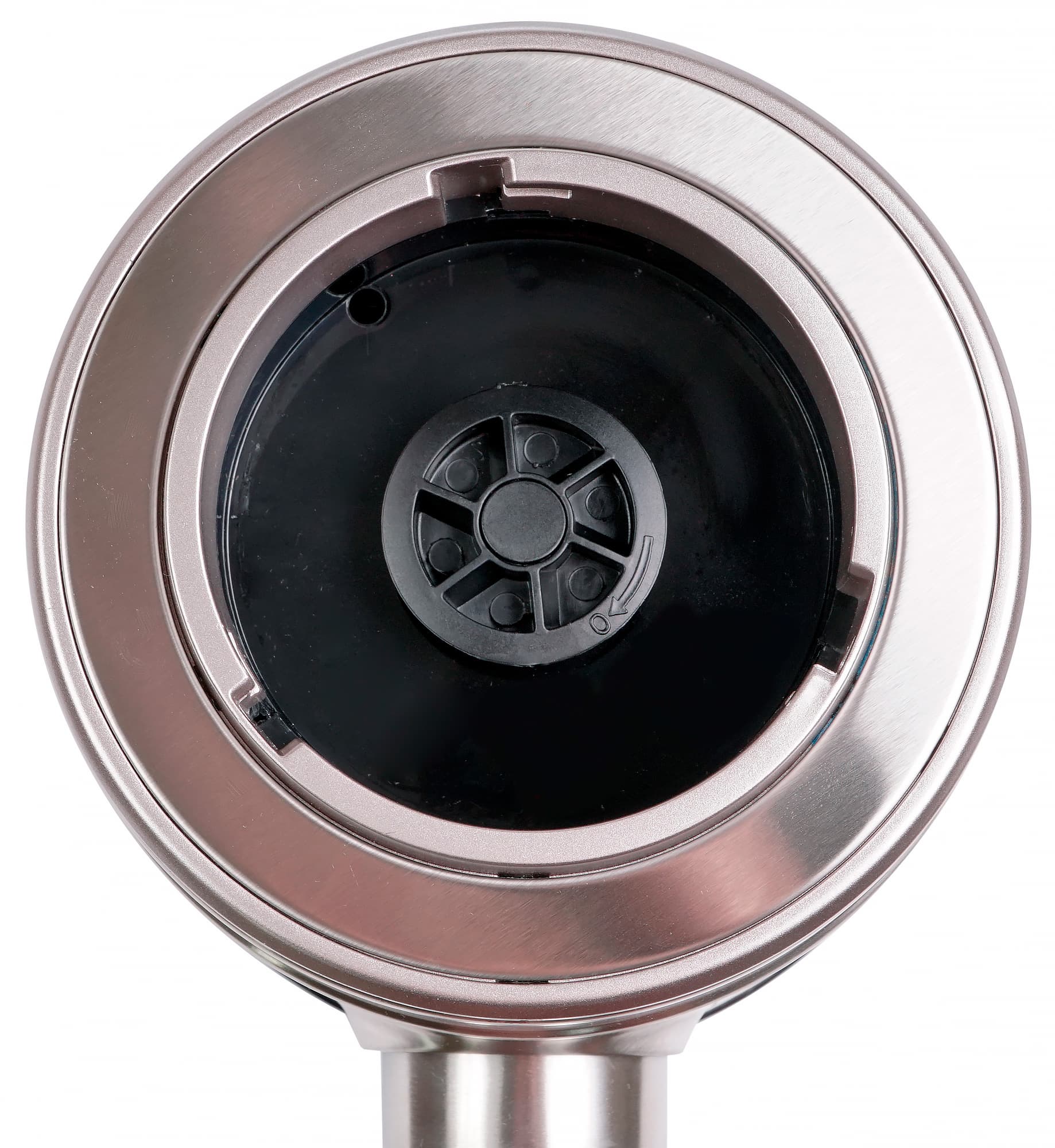 Внутрь чаши, через силиконовую уплотнительную прокладку, с помощью пластикового стопорного кольца вставляется блок ножей. Он представляет собой шесть небольших серрейторных лезвий из нержавеющей стали.