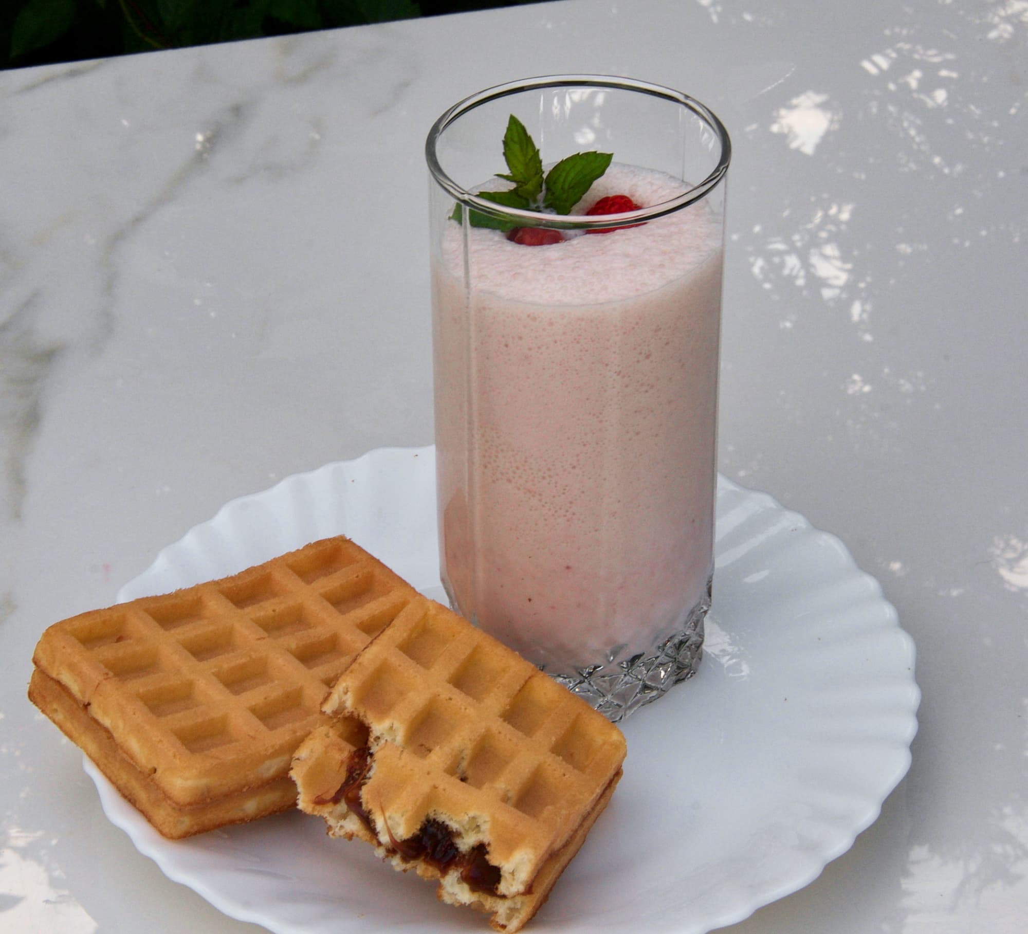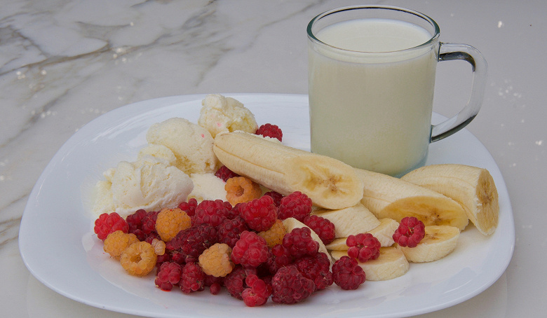 Молочный коктейль с бананами и малиной