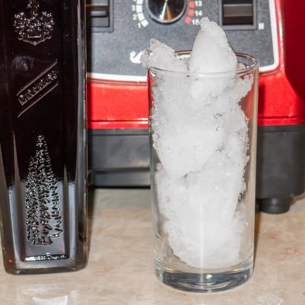 Измельчали в импульсном режиме. Всего для превращения кусочков в ледяную крошку понадобилось 4 импульса. Очень быстро и довольно качественно.