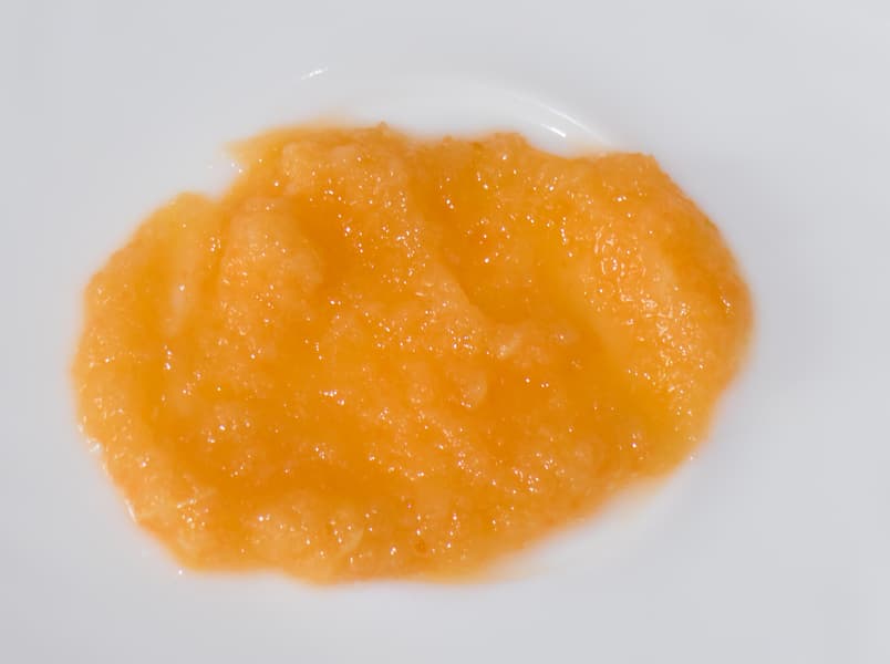 Смузи густой, твердые яблоки и жесткая морковь измельчены настолько мелко, что совершенно неразличимы в готовом напитке.