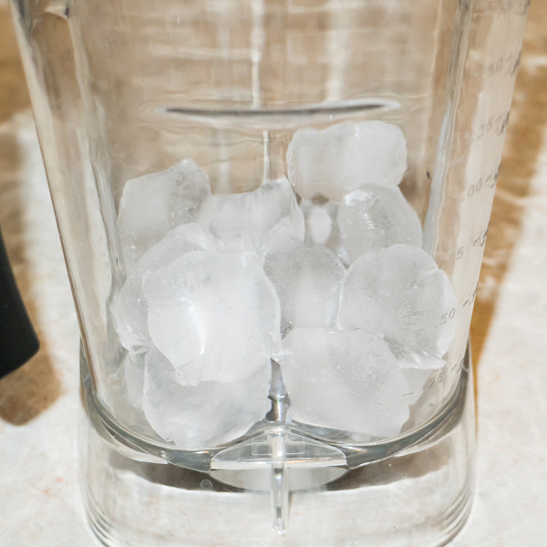 200 г кусочков льда, замороженного в специальных пакетах, поместили в чашу.