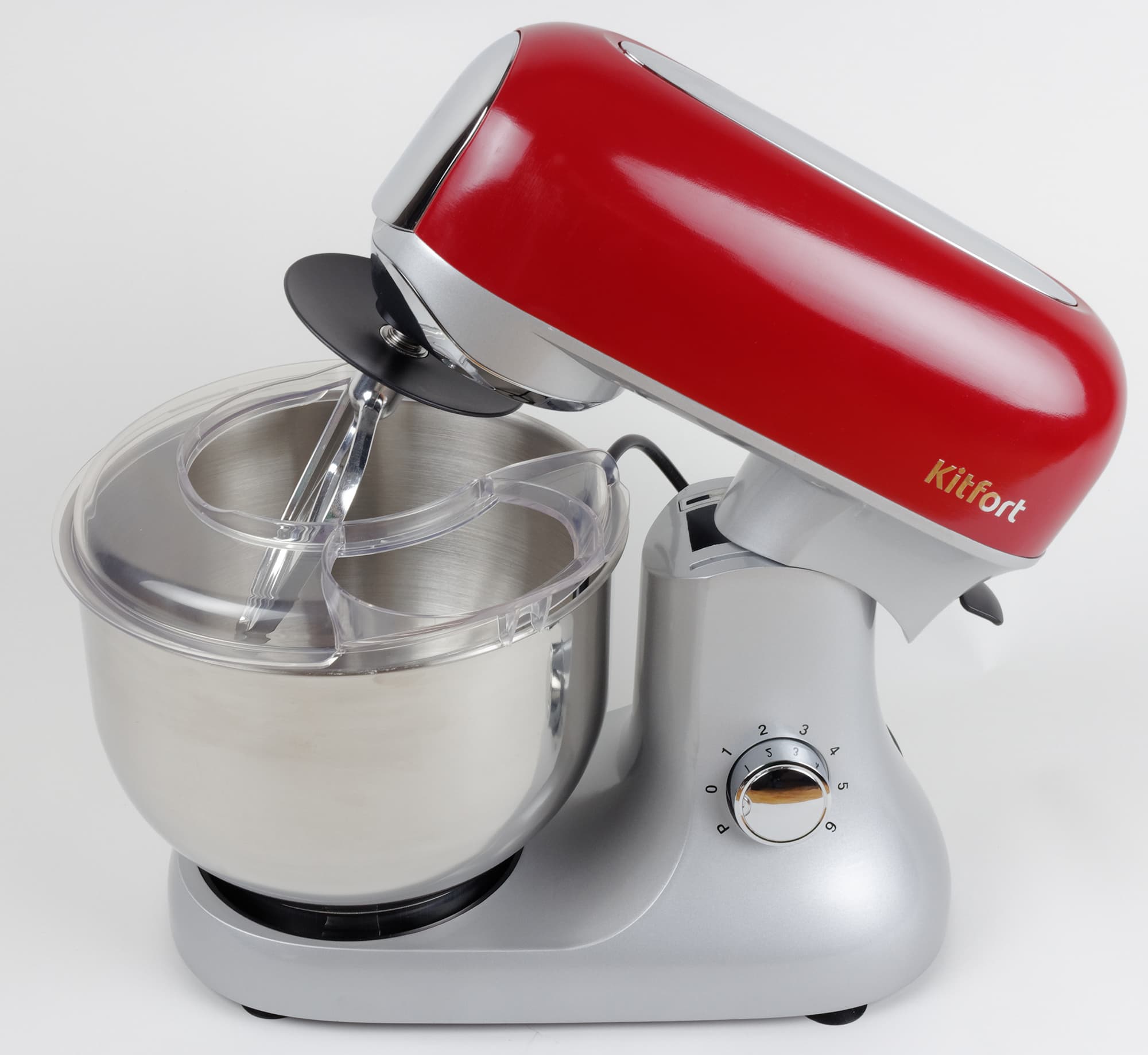 В этом разделе стоит отметить, что поднятый моторный блок, как это свойственно планетарным миксерам, не дает включить прибор. Если его поднять во время работы, мотор будет принудительно остановлен, и чтобы включить прибор снова, надо будет не просто опустить блок, но и выставить скорость на ноль и затем повернуть рукоятку до нужного значения.