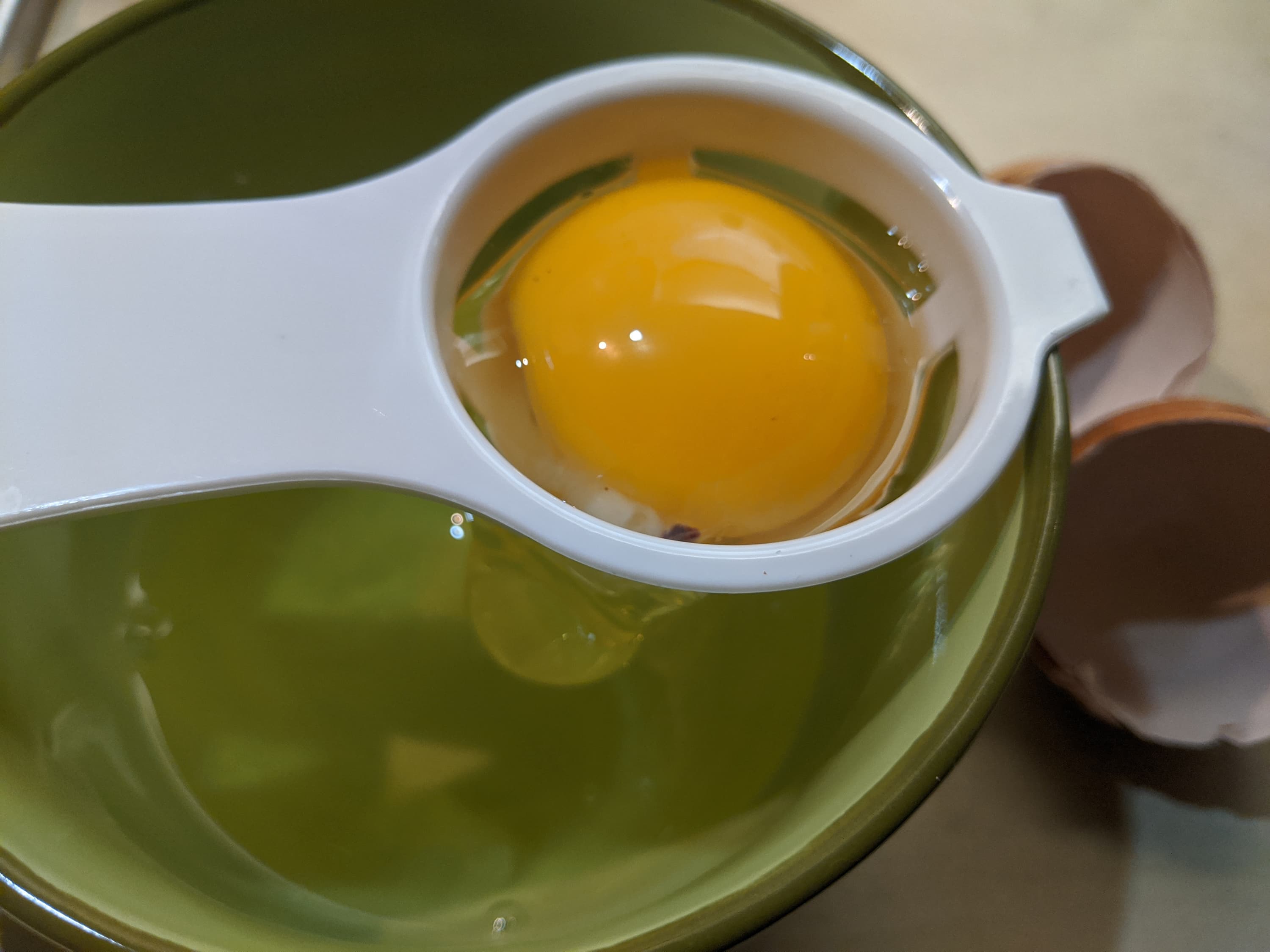 К слову сказать, на этом тесте мы испытали и входящий в комплект сепаратор для яиц — он оказался удобным.