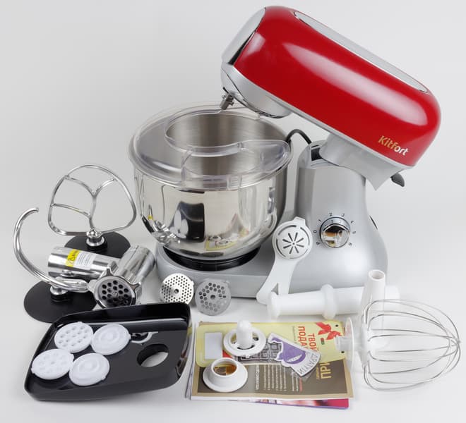 Kitfort KT-1367 — удобное и достаточно мощное многофункциональное устройство, которое позволит немного сэкономить место на кухне. Объединение планетарного миксера и мясорубки с дополнительными насадками поможет в приготовлении многих блюд, которые без малой механизации слишком трудоемки.