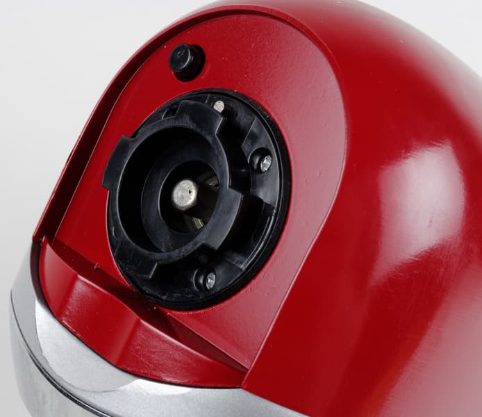 В центре байонета расположен шестигранный вал, на который надевается шнек мясорубки. Видимых механических предохранителей, защищающих двигатель прибора от перегрева при заклинивании вала, снаружи нет.