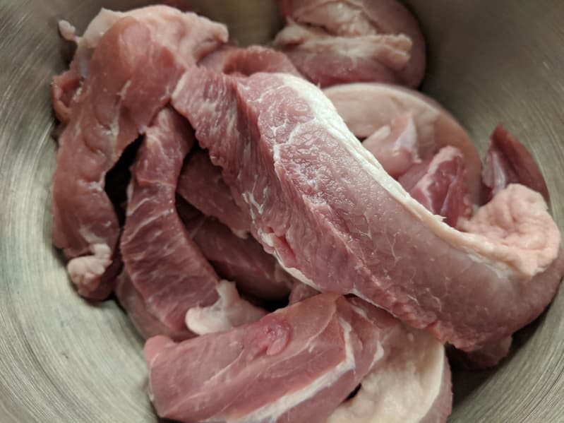 Для тестирования мы взяли мякоть свиного окорока, удалив большую часть жил и жира и нарезав мясо длинными полосами такой толщины, чтобы они проходили в горловину мясорубки без проталкивания, и включили мясорубку (на максимальную скорость) и секундомер.