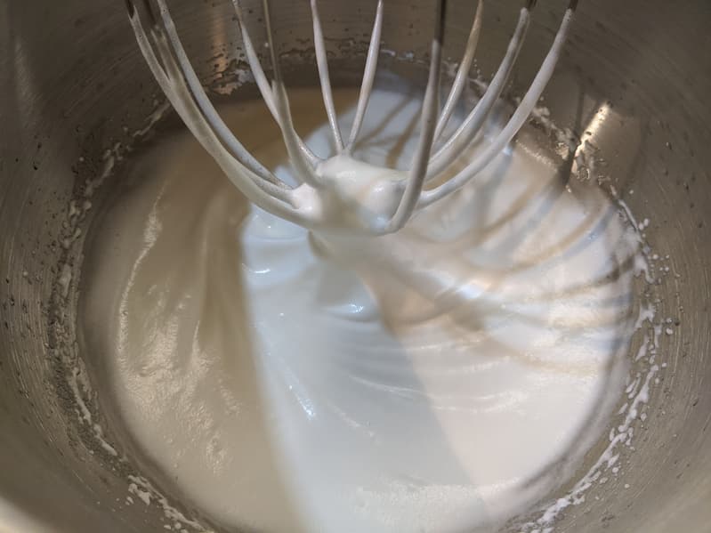 С помощью венчика мы взбивали два белка и 50 граммов сахарной пудры до крепкой пены. Через 5 минут и 53 секунды взбивания на самой высокой, шестой, скорости пена была не просто крепкой — ее можно было резать ножом.