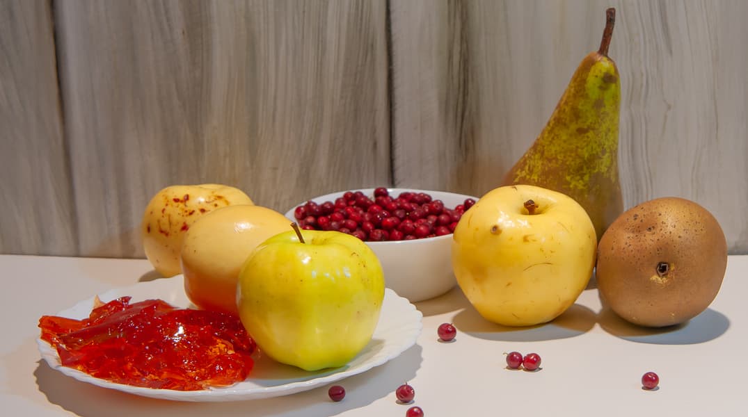 Пюре из груши, печеного яблока и брусники с добавлением яблочного мармелада