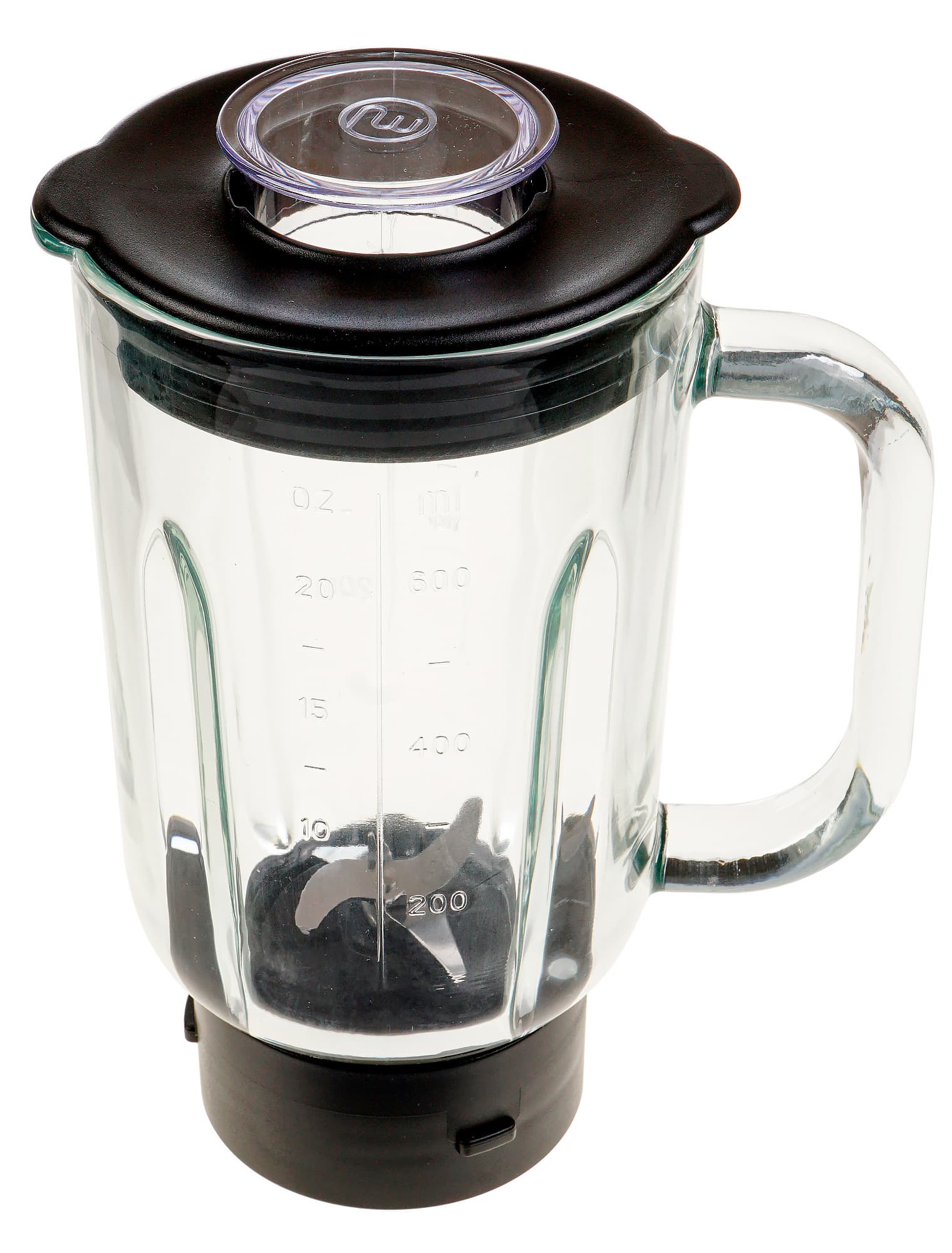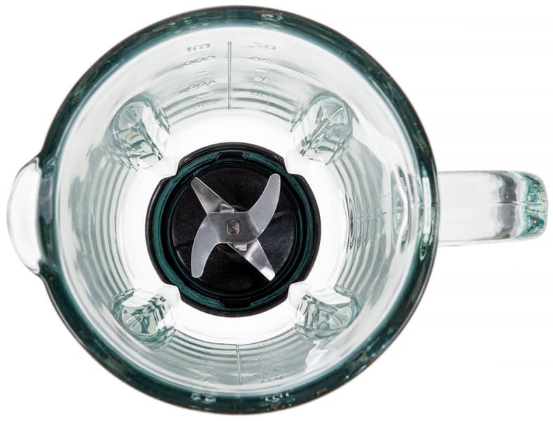 Кувшин из толстого стекла совсем не тяжелый благодаря своим размерам. На стенки нанесена мерная шкала, сбоку литая удобная ручка. Кувшин легко закрывается пластиковой крышкой с загрузочным отверстием, а отверстие — пластиковым прозрачным колпачком, предохраняющим от разбрызгивания жидкости в процессе работы.