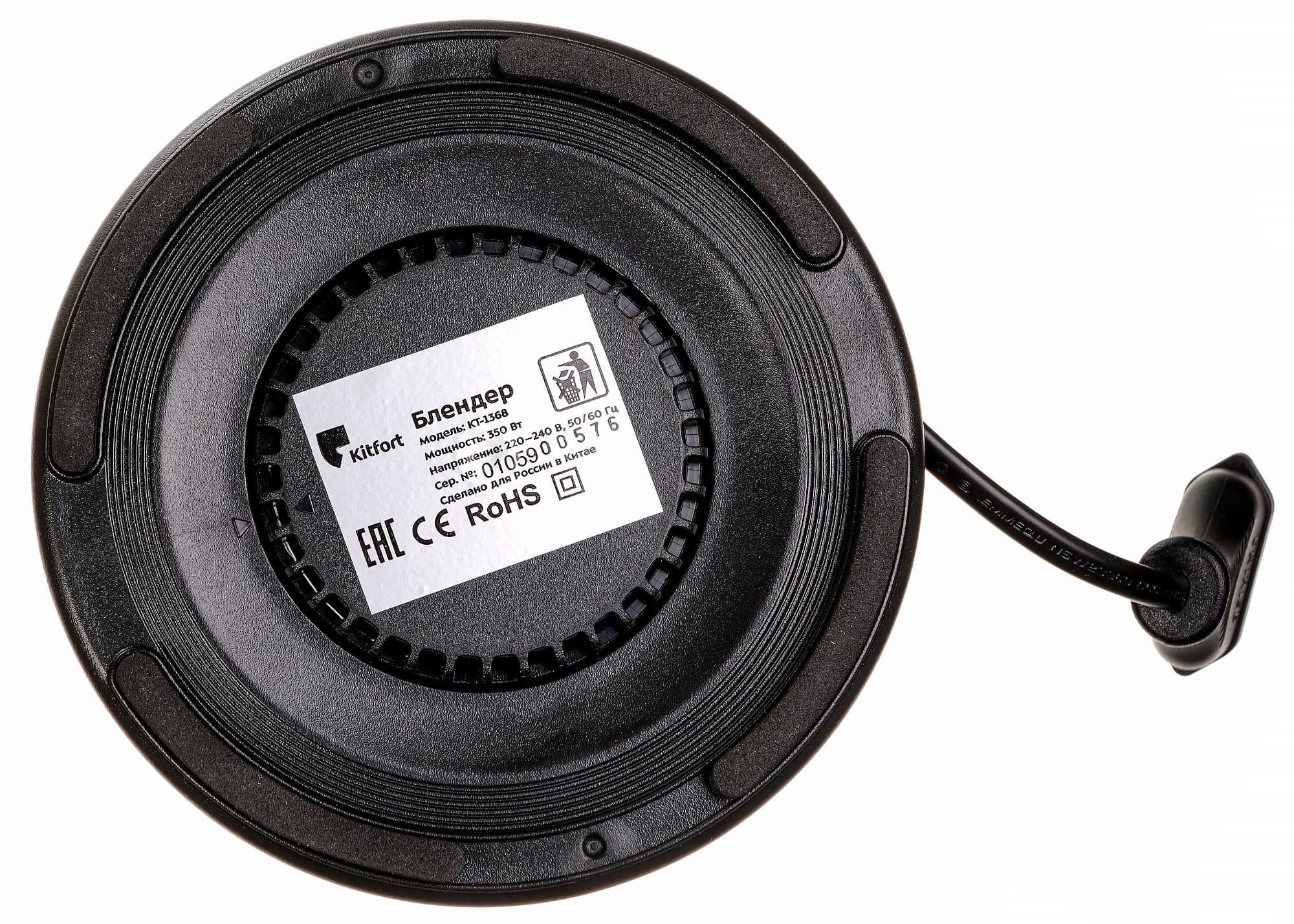 Снизу у блендера имеются резиновые ножки, которые обеспечивают фиксацию устройства на столе и снижают уровень вибрации и шума при работе.