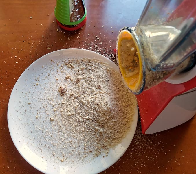 Результат можно назвать удовлетворительным: орехи измололись практически в муку, но в ней встречалось много крупных неразмолотых кусочков — придется просеивать.