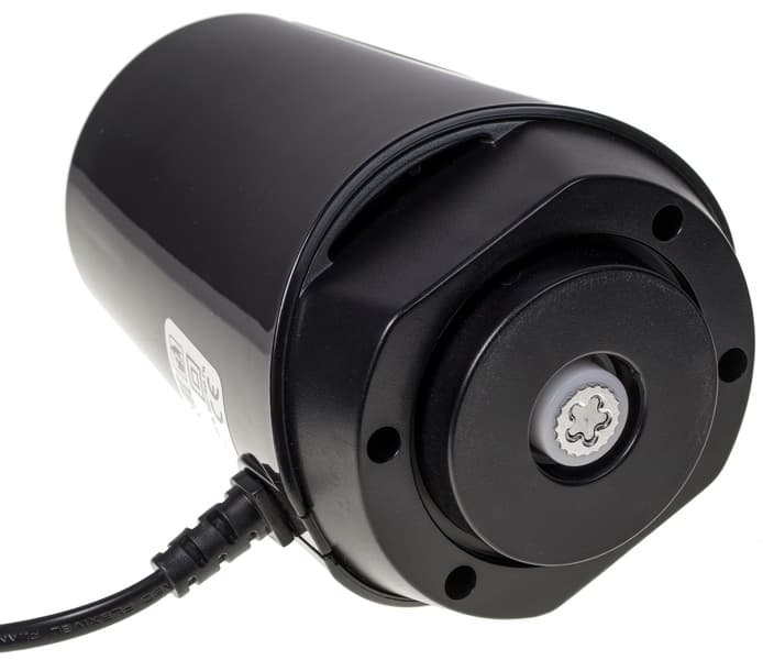 Моторный блок в форме усеченного конуса выполнен из черного пластика, на передней его стороне — металлическая вставка с логотипом производителя. На верху две кнопки: скорость I и скорость II. Паз для закрепления ножевого блока облицован металлом. Сзади, над местом прикрепления электрического шнура, наклейка с некоторой технической информацией.