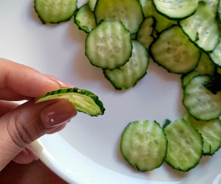 Ломтики действительно получились волнистые, но толстыми их назвать сложно.