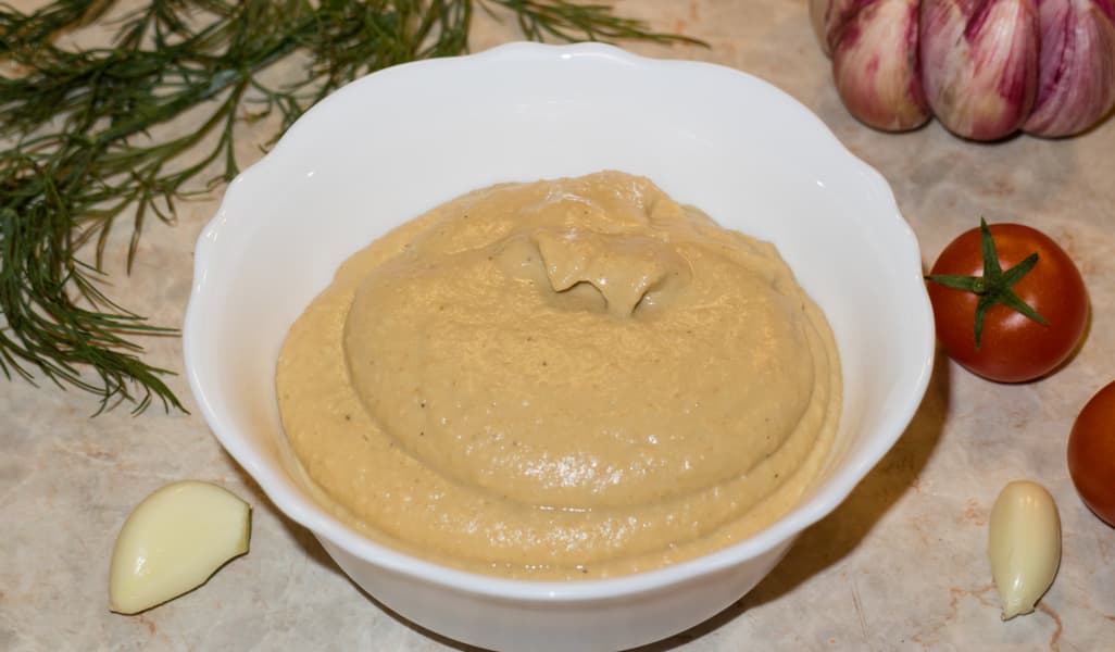 Консистенция полученного блюда хороша — по густоте ближе к пасте, измельчение достаточно тонкое, шкурки нута, чеснок и прочие ингредиенты превращены в практически однородную структуру.