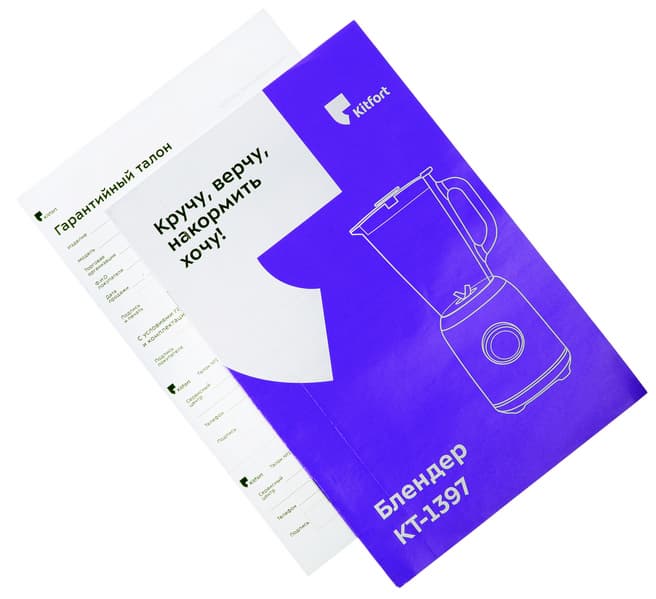 Инструкция выпущена в форме 16-страничной брошюры. Напечатана на плотной глянцевой бумаге. Содержание и список разделов традиционны для Kitfort и охватывают все аспекты взаимодействия с блендером. Изучив документ, пользователь ознакомится с конструкцией и мерами предосторожности при эксплуатации прибора; узнает, как им пользоваться и управлять, а также очищать и ухаживать. Раздел «Устранение неполадок» содержит перечень наиболее простых проблем и способов их преодоления. Для вдохновения пользователя приведены несколько рецептов: фруктовый коктейль, смузи, соус, суп-пюре и еще несколько простых блюд.