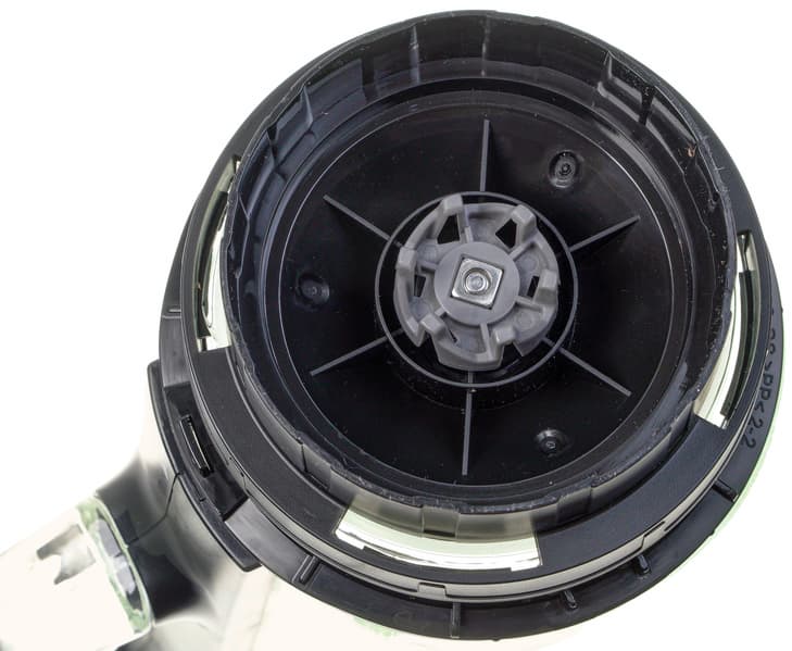 В месте соединения блока с чашей имеется силиконовый уплотнитель. Четыре стальных лезвия простой треугольной формы размещены под углом к горизонтали. Края их заточены обычным образом — гладко. Длина лезвий составляет около двух сантиметров.