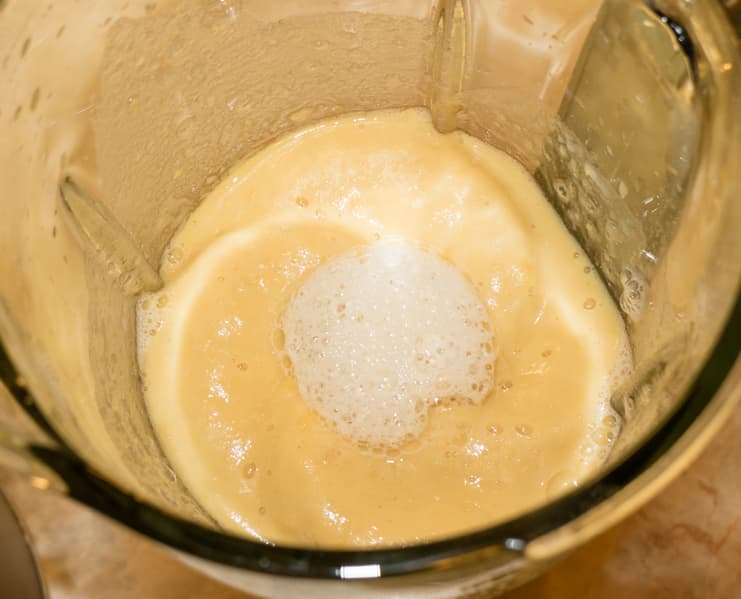 Вес помешенного в чашу блендера отварного нута с отваром составил 700 граммов. Измельчали его около 50 секунд на первой скорости. За это время нут превратился в однородною массу средней густоты — гуще, чем тесто на оладьи. Мощность блендера колебалась между 330 и 360 Вт.