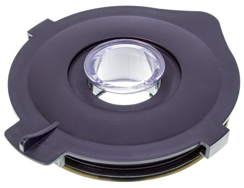 Крышка кувшина изготовлена из пластика черного цвета. Фиксируется на емкости с помощью двух боковых пазов, в которых размещаются выступы края стеклянного стакана. Пластиковая деталь, идущая вертикально вдоль ручки кувшина, является частью защитного механизма — если крышка закрыта неплотно, мотор не включится. С внутренней стороны крышки в месте соединения со стенками чаши имеется два ряда уплотнителей. В центре — традиционное отверстие диаметром около 4,5 см, закрываемое мерным колпачком. Колпачок плотно вставляется, никакого фиксирующего крепежа не предусмотрено. На стаканчике нанесены отметки объема от 5 до 25 мл с шагом в 5 мл.