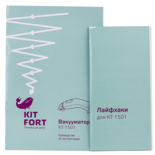 Инструкция к вакууматору представляет собой брошюру из 12 страниц. Внутри есть сведения об эксплуатации и уходе, видах расходников, а также вакуумации как таковой, ее особенностях и преимуществах. Еще одна брошюра под названием «лайфхаки для КТ-1501» — презабавная книжица, в которой содержится много как полезных, так и просто забавных советов и идей, связанных с применением вакууматора.