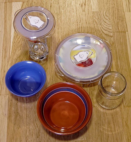 Сейчас, думаем, вакуумируем, подержим контрольное время и сравним результаты. Как бы не так! Крышка отказалась вакуумировать керамику, вакууматор старательно работал вхолостую — видимо, у керамических мисок недостаточно ровные края.