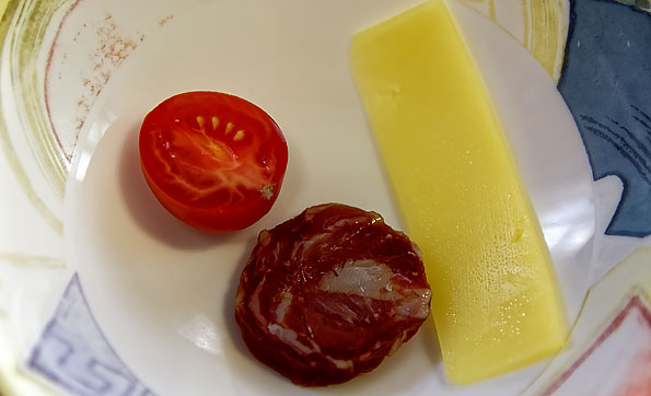 И что? И ничего, получили великолепное закусочное меню сразу по прибытии на место. Во-первых, хоть никакой производитель этого не рекламирует, вакуумная упаковка сохраняет свежесть продуктов и без холодильника, так что у вас есть все шансы довезти упакованное до места в наилучшем виде.