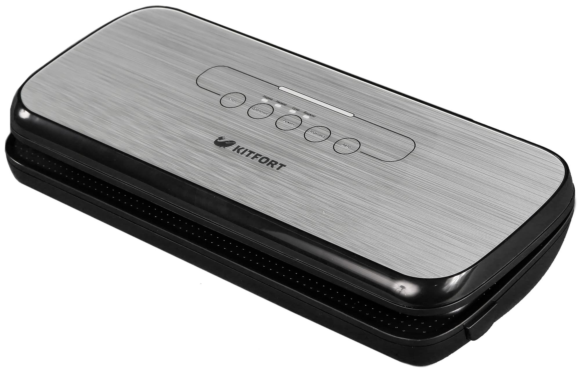 Вакуумные упаковщики уверенно вошли в нашу жизнь и, хоть и не стали частым гостем на обычной домашней кухне, перестали восприниматься как что-то экзотическое. Вакууматор KT-1502-2, выпущенный под российским брендом Kitfort, является типичным представителем этого класса приборов. Скажем больше: мы уже видели очень похожий упаковщик, выпущенный под другим брендом. Так что в данном случае, очевидно, Kitfort не стал изобретать велосипед, а просто воспользовался одним из готовых решений, ограничившись лишь переводом инструкции и надписей, а также нанесением на прибор собственного логотипа.