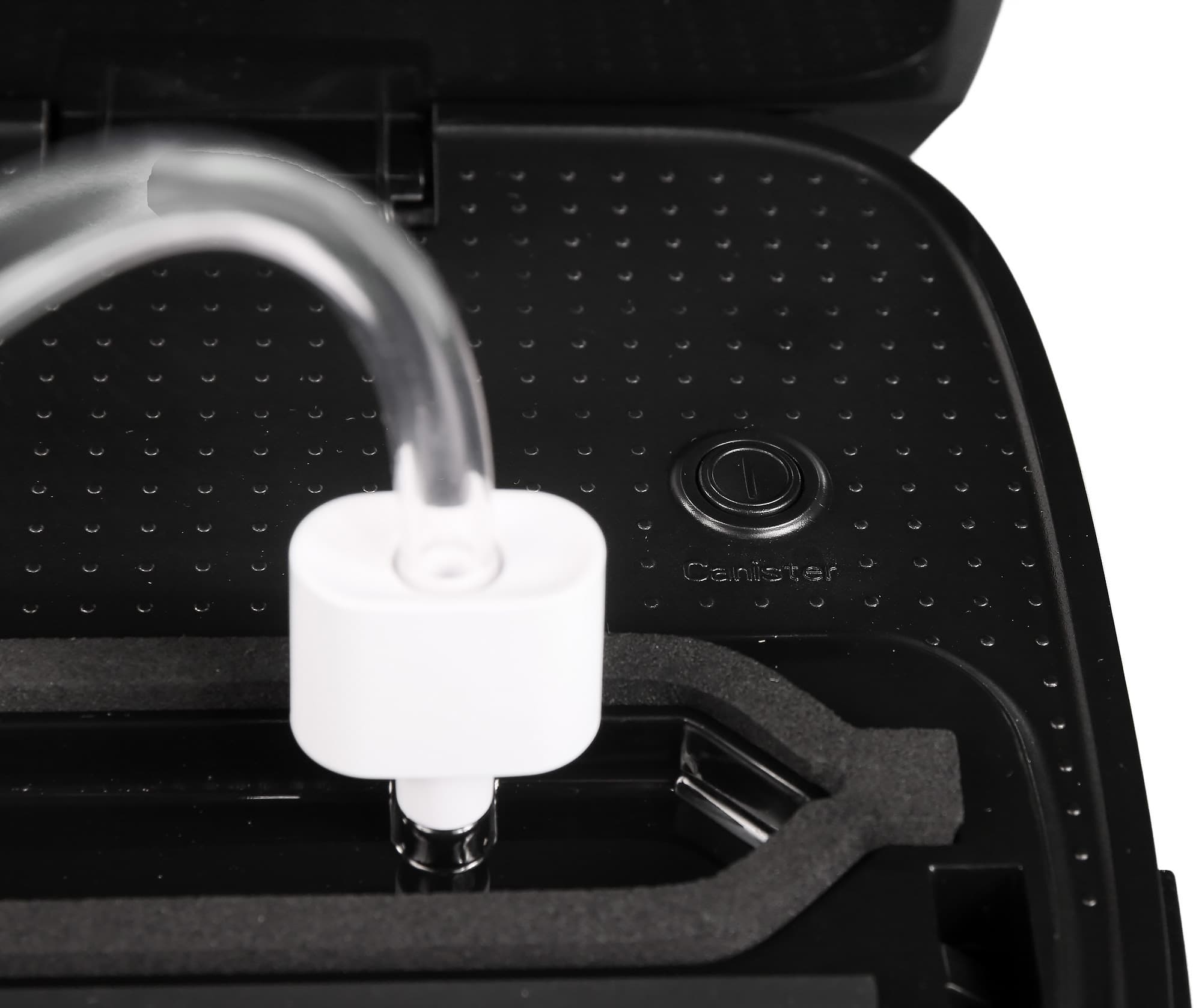 Дополнительная механическая кнопка, расположенная под крышкой устройства, позволяет вакуумировать контейнеры с помощью специального шланга-переходника. Откачка воздуха будет продолжаться до повторного нажатия кнопки.