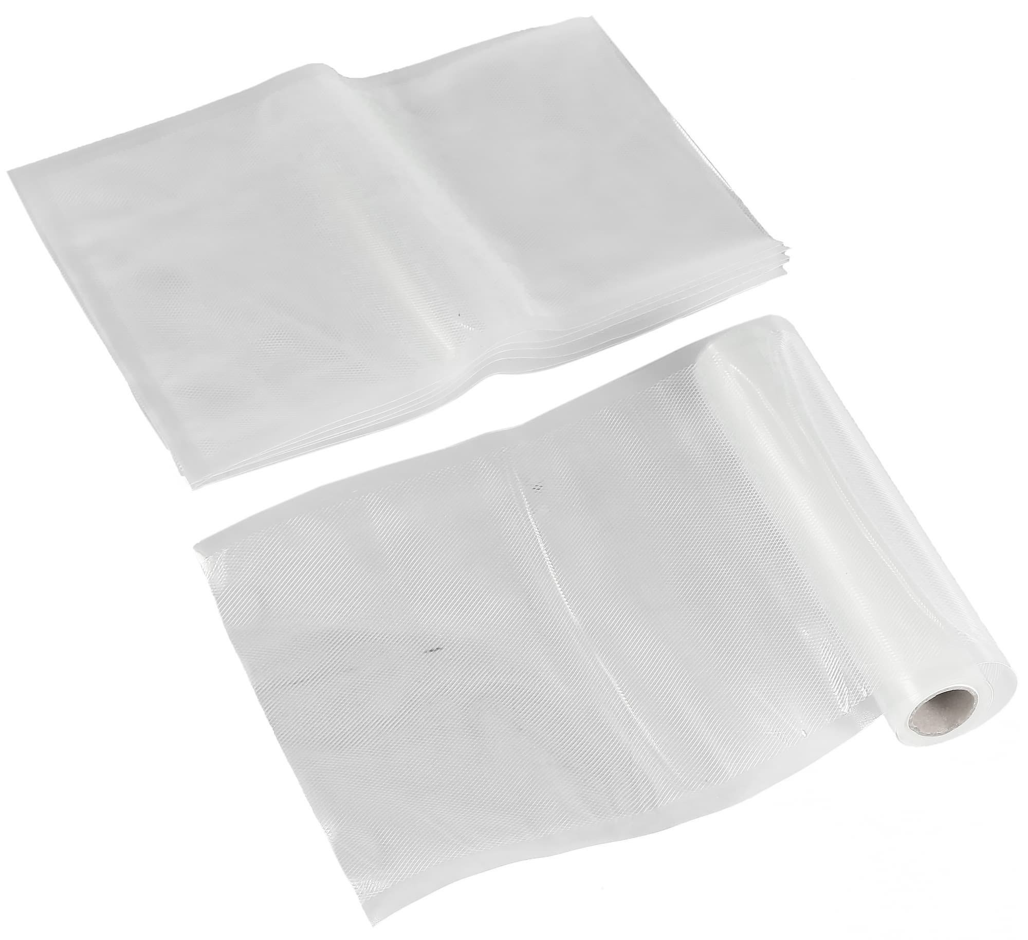 Вместе с вакууматором к нам попали пакеты и рулоны для самостоятельного изготовления пакетов, выпущенные под брендом Kitfort. Рулоны и пакеты оказались упакованы в картонные коробки, оформленные в одном стиле с вакууматором. В коробке с рулонами обнаружилось 4 рулона размером 15×300 см.