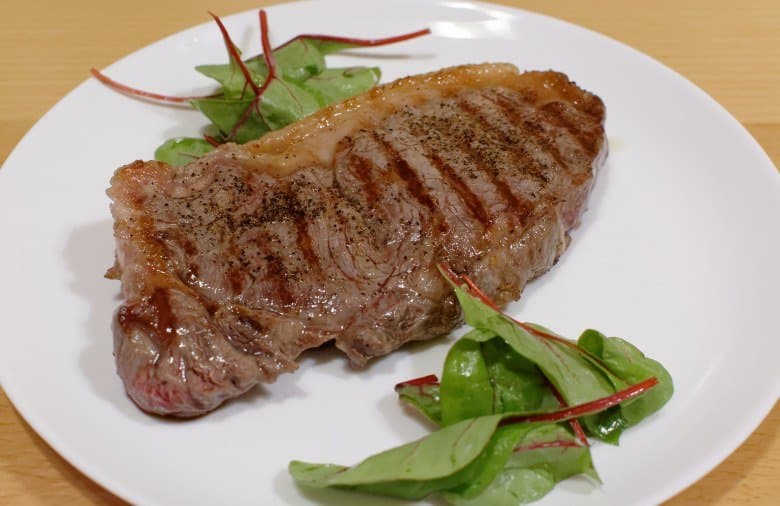Для того чтобы добиться нужной степени «прожарки», мы рекомендуем свериться с таблицей (например, ее можно подсмотреть вот тут). Время приготовления стейка толщиной в 1 дюйм (примерно 2,5 см) — около 1 часа. По истечении этого времени стейк нужно извлечь из пакета и быстро, буквально по несколько секунд с каждой стороны, обжарить на горячей сковороде.