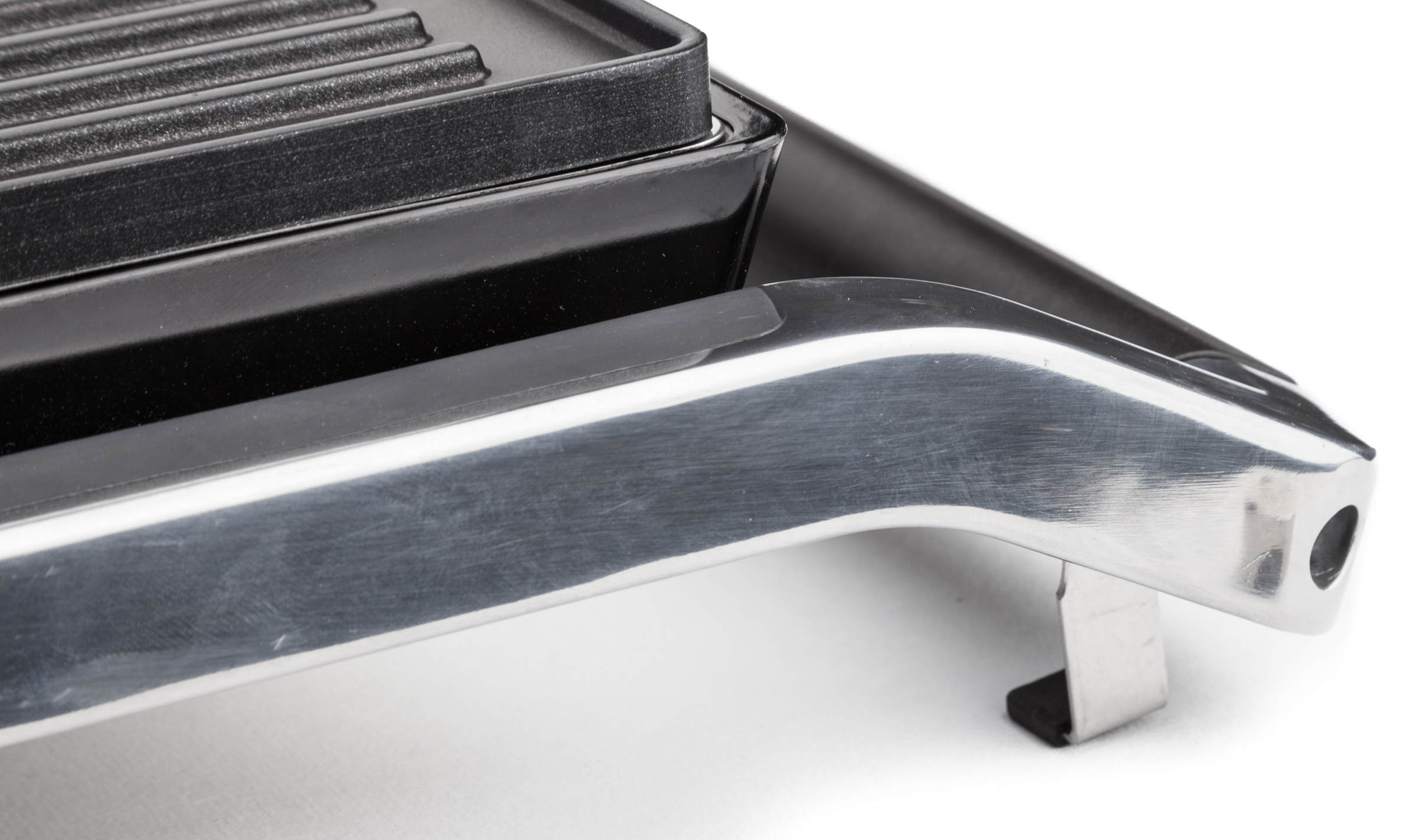 Если использовать гриль в разложенном виде, то эти подвижные детали играют роль ножек, так что обе панели — верхняя и нижняя — находятся на одной высоте.