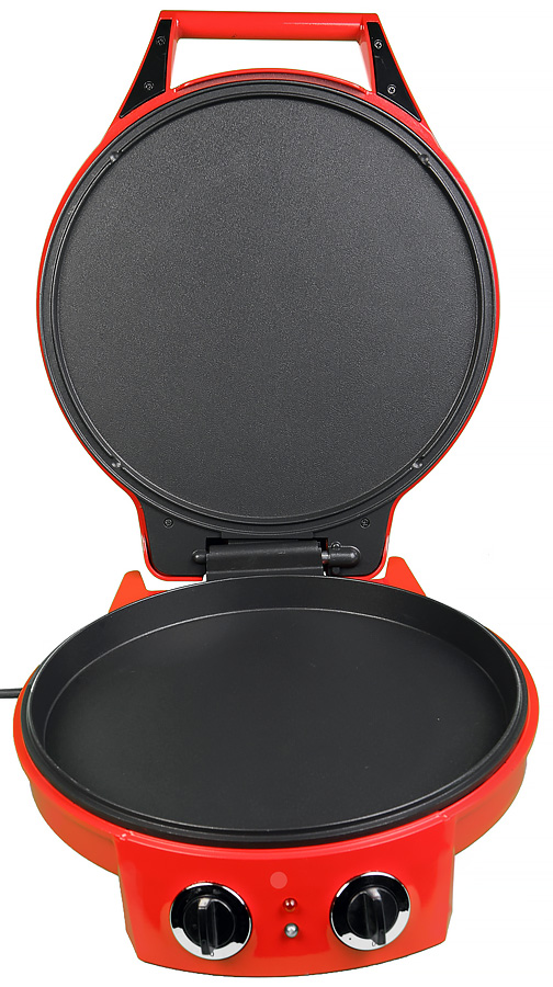 Индикаторы, присутствующие на корпусе, позволяют понять, в каком состоянии находится пиццамейкер в данный момент. Первый индикатор свидетельствует о том, что прибор работает, второй — о том, что в данный момент включен нагревательный элемент.