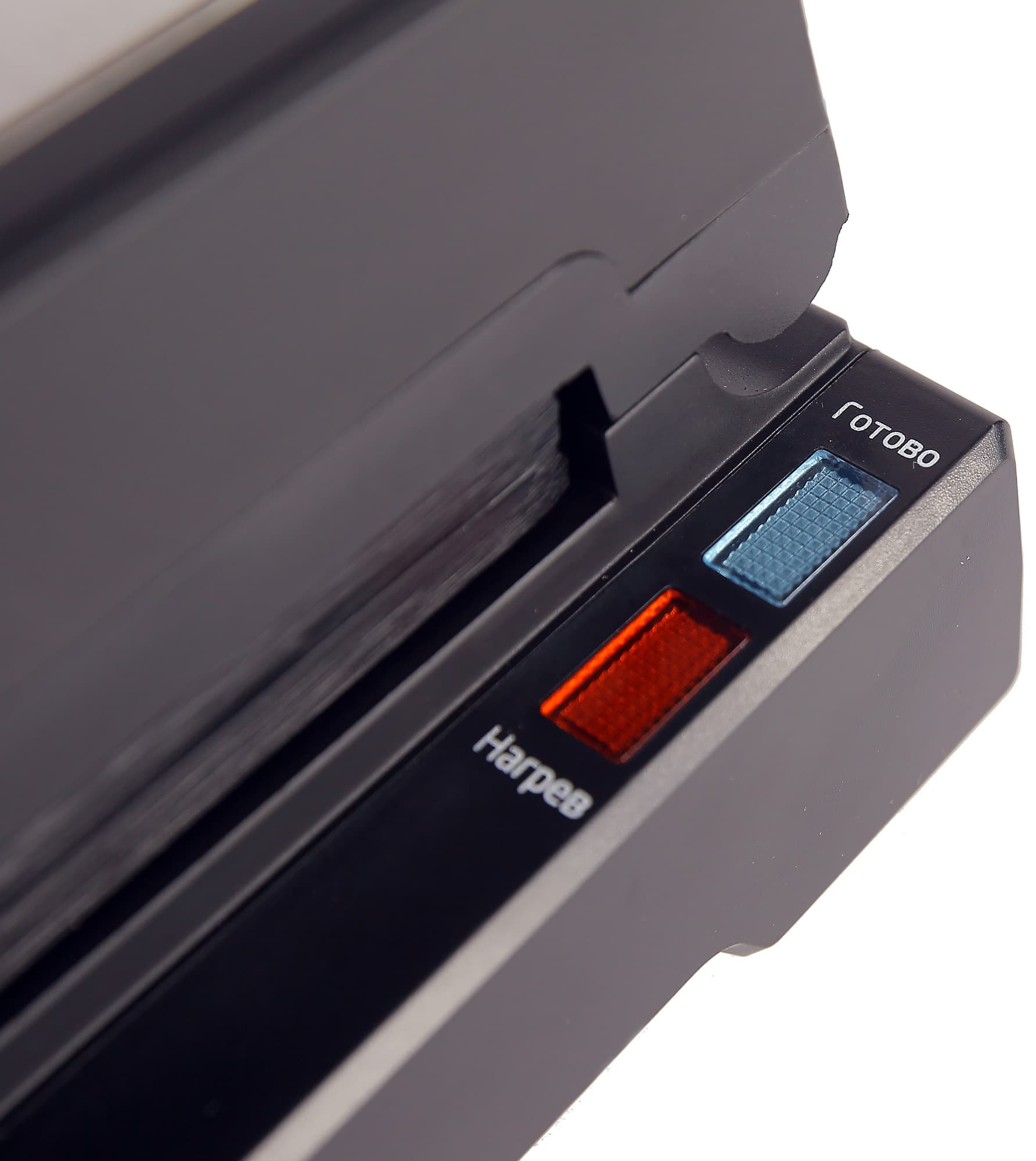 Условно панелью управления можно назвать правую сторону прибора. Именно здесь расположены два индикатора: голубой индикатор готовности к работе и красный — нагрева. Рядом с индикаторами имеются соответствующие подписи.