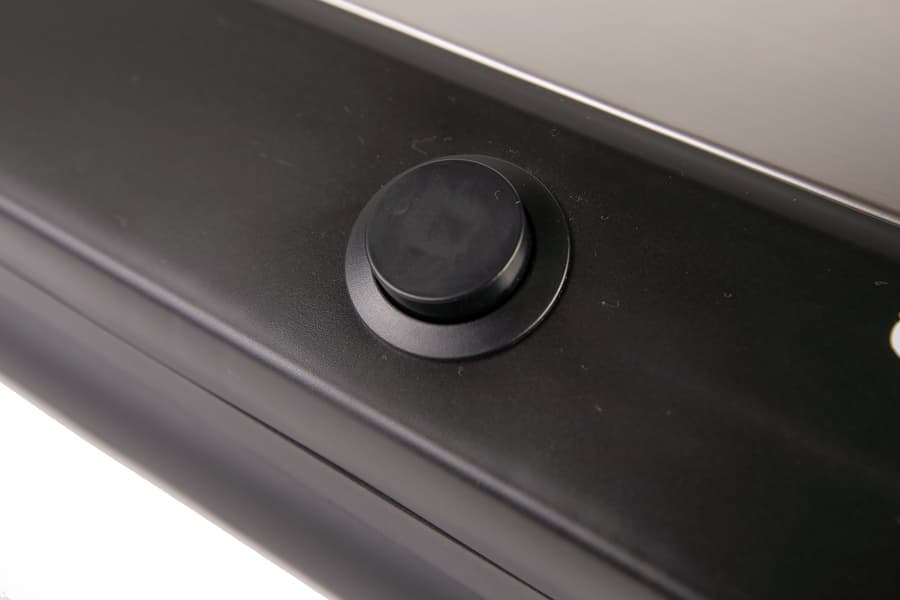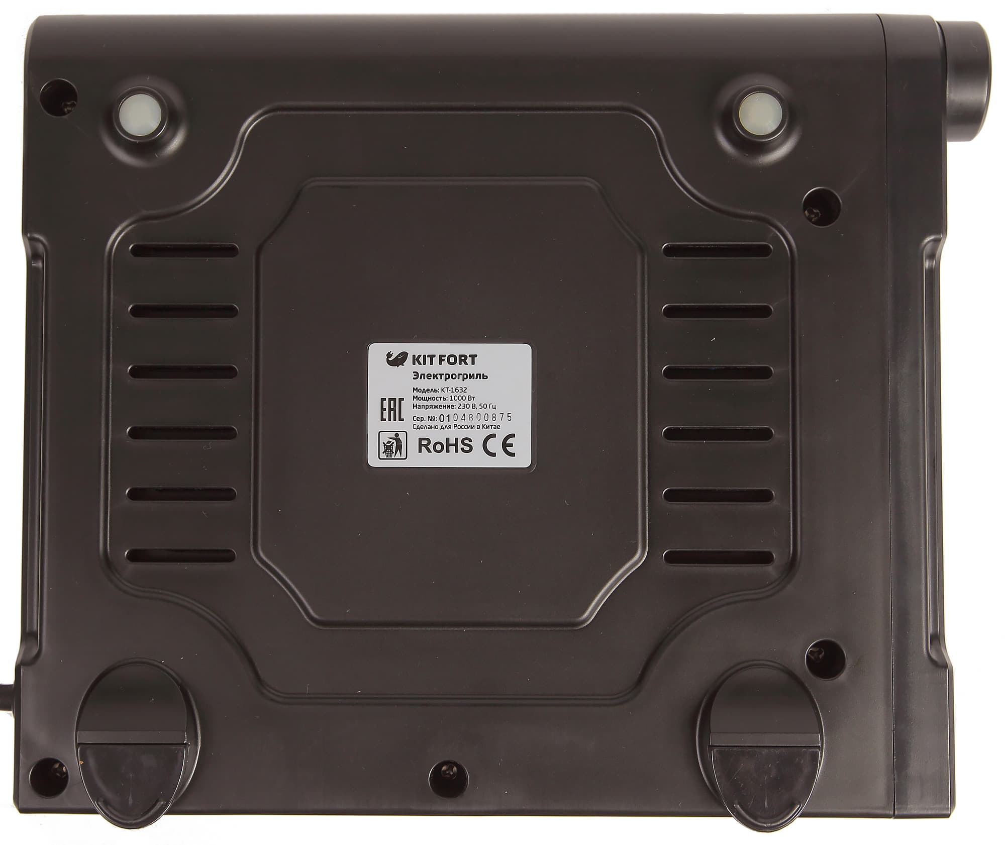Со стороны дна можно увидеть информационную наклейку, вентиляционные отверстия и четыре ножки. Прорезиненные вставки имеются лишь у двух передних ножек. Тем не менее, прибор довольно устойчиво и без излишнего скольжения располагается на поверхности стола.