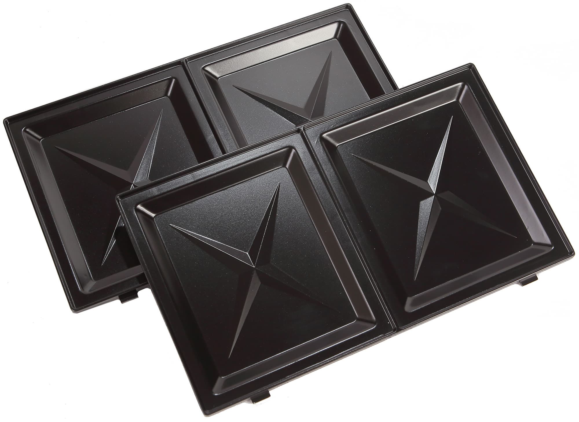 Сменные панели изготовлены из алюминия. С внешней и боковых сторон поверхность обработана антипригарным покрытием. Покрытие оценено нами как качественное — гладкое, ровное, без сколов и царапин. На панелях, предназначенных для подогрева сэндвичей, нанесены рифленые узоры, а края бутербродов будут сдавливаться сильнее, чем середина.