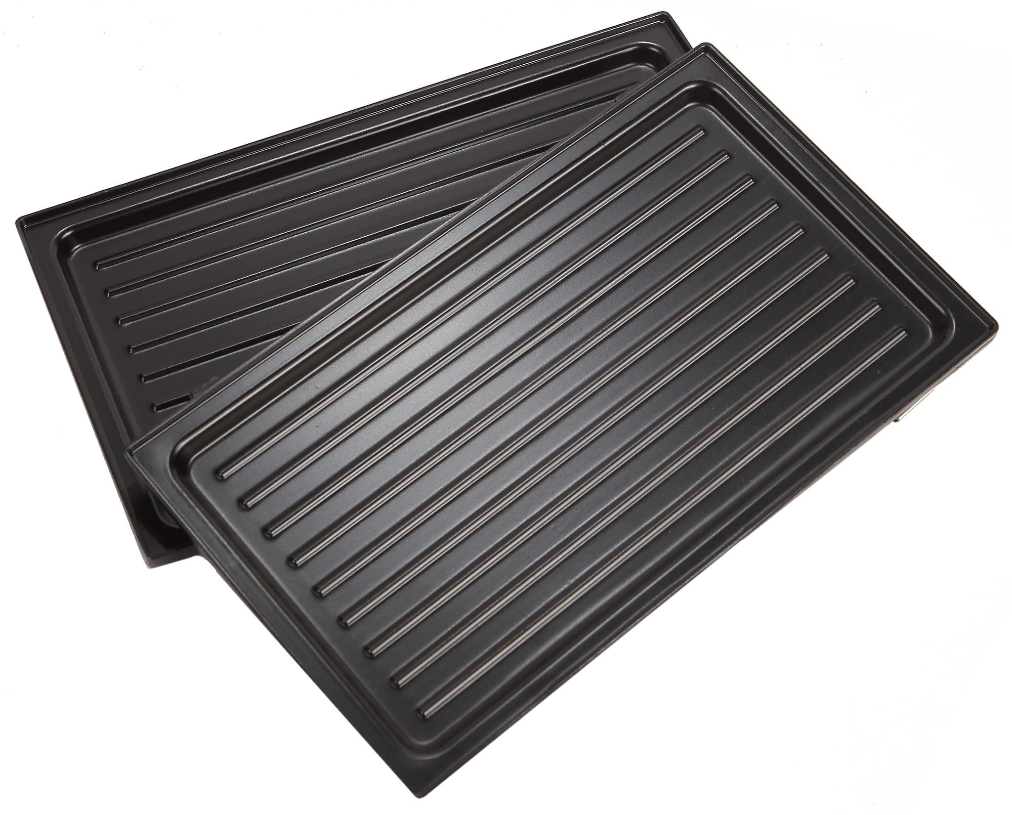 На панели для гриля нанесены специальные бороздки, предназначенные для более интенсивного контакта горячих панелей с продуктом и сбора вытапливаемого жира. Форма панелей в каждой паре абсолютно идентична, так что проблем с выбором верхней и нижней панели при установке не возникает.