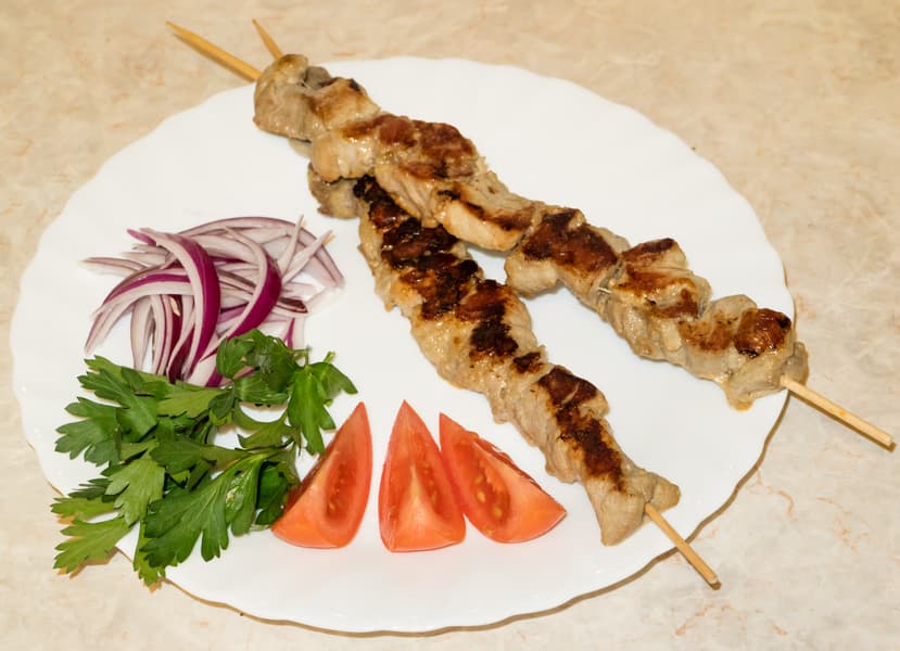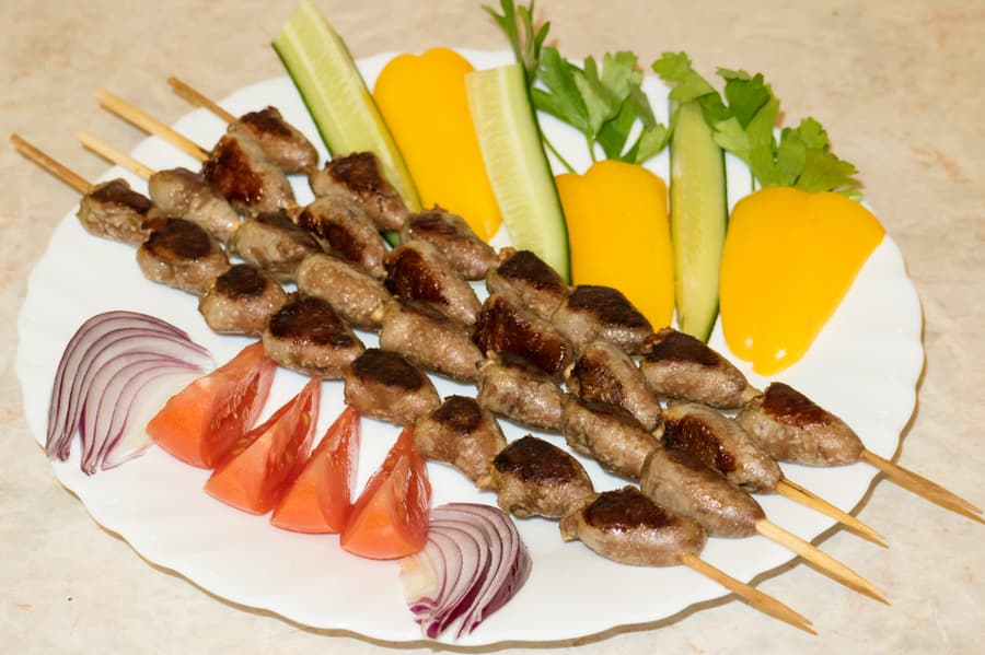 Сердечки и мясо получились отлично приготовленными, сочными и ароматными. Повторить такой эксперимент на сковороде можно, только затем придется очищать от брызг масла всю плиту. Для жарки шашлычков в таком стиле гриль незаменим.