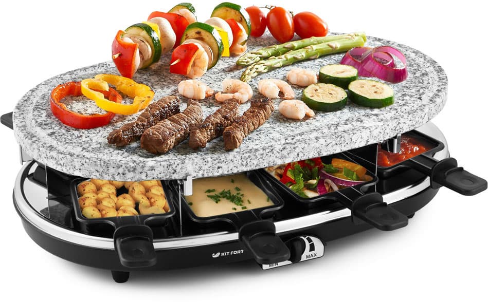 Раклетница-гриль Kitfort KT-1651 нам весьма понравилась. Тестирование превратилось в праздник. С помощью прибора можно приготовить блюда, традиционно относящиеся к грилю, плюс запечь в порционных сковородках овощи, мясо, рыбу или просто растопить сыр, чтобы сделать классический раклет. Прибор немалого размера, что позволяет им комфортно пользоваться компанией из 4-6 человек. Вообще в комплекте 8 сковородок, так что количество гостей можно смело увеличивать и до восьми — главное подобрать такое место для размещения прибора, чтобы гости могли свободно сидеть и иметь доступ к раклетнице.