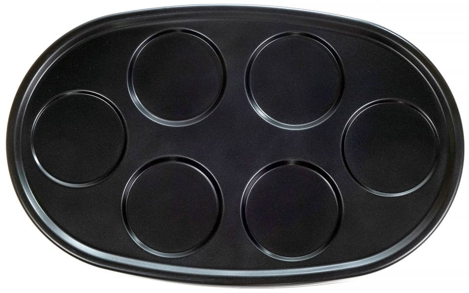 Две первые панели изготовлены из металла и с обеих сторон обработаны антипригарным покрытием. На панели для блинчиков можно за один раз поджарить шесть небольших панкейков. Высота углублений около 5 мм, диаметр со стороны дна — 9 см.