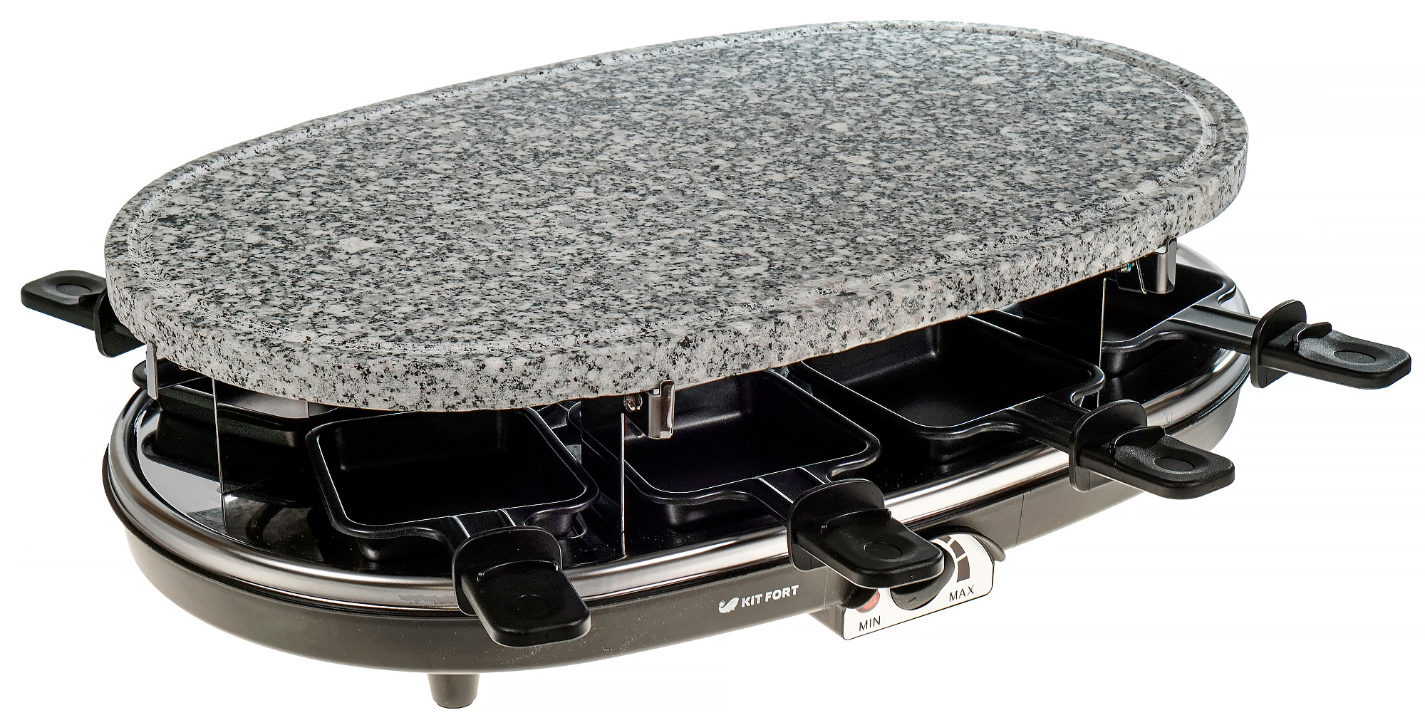 Мы долго размышляли, следует ли отнести следующий факт к минусу. Скорее, это конструктивная особенность прибора. Тем не менее, нужно быть готовым к тому, что находиться рядом с раклетницей тяжело, если в комнате жарко. От тэна идет довольно ощутимое тепло. Зато в зимнем доме или прохладным осенним вечером на даче раклетница-гриль Kitfort KT-1651 может стать тем центром, вокруг которого соберется вся семья или гости.