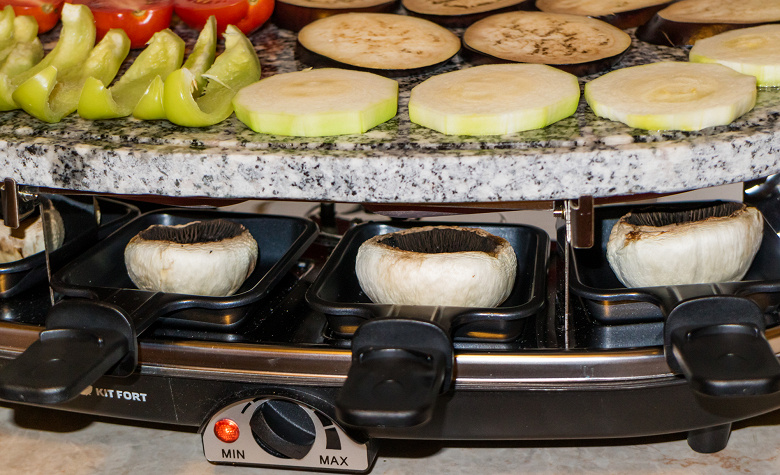 Раклетница оказалась весьма интересным аппаратом. Она выступает в роли хорошего гриля — несмотря на отсутствие двустороннего контакта панелей с продуктами, мощности хватало даже для обжарки кабачков. Так что с помощью раклетницы можно жарить сосиски, рыбу, мясо, а также готовить множество других блюд. Сковородки позволяют плавить сыр и готовить запеченные порционные блюда, например жульен. В процессе приготовления каждый из гостей или членов семьи может экспериментировать с сочетанием ингредиентов и сыров, собирая свой собственный набор из любимых или предпочитаемых продуктов.