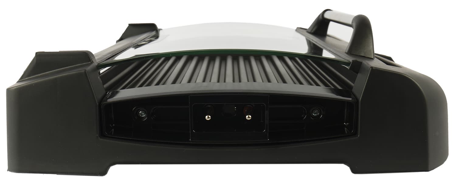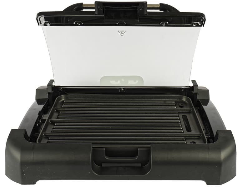 Нагреваемая панель хоть и съемная, но в нее, как мы помним, интегрировано гнездо для установки регулятора. Таким образом, при очистке важно избегать попадания воды на разъем. То есть под проточную воду панель не поставить, и в посудомойку ее, разумеется, помещать нельзя. В инструкции рекомендуют очищать панель бумажными полотенцами или салфетками, а затем протирать влажной тканью. С плоской стороной панели получается еще куда ни шло, но с рифленой придется повозиться, а если жарилась, допустим, баранина на косточке — даже думать не хочется.