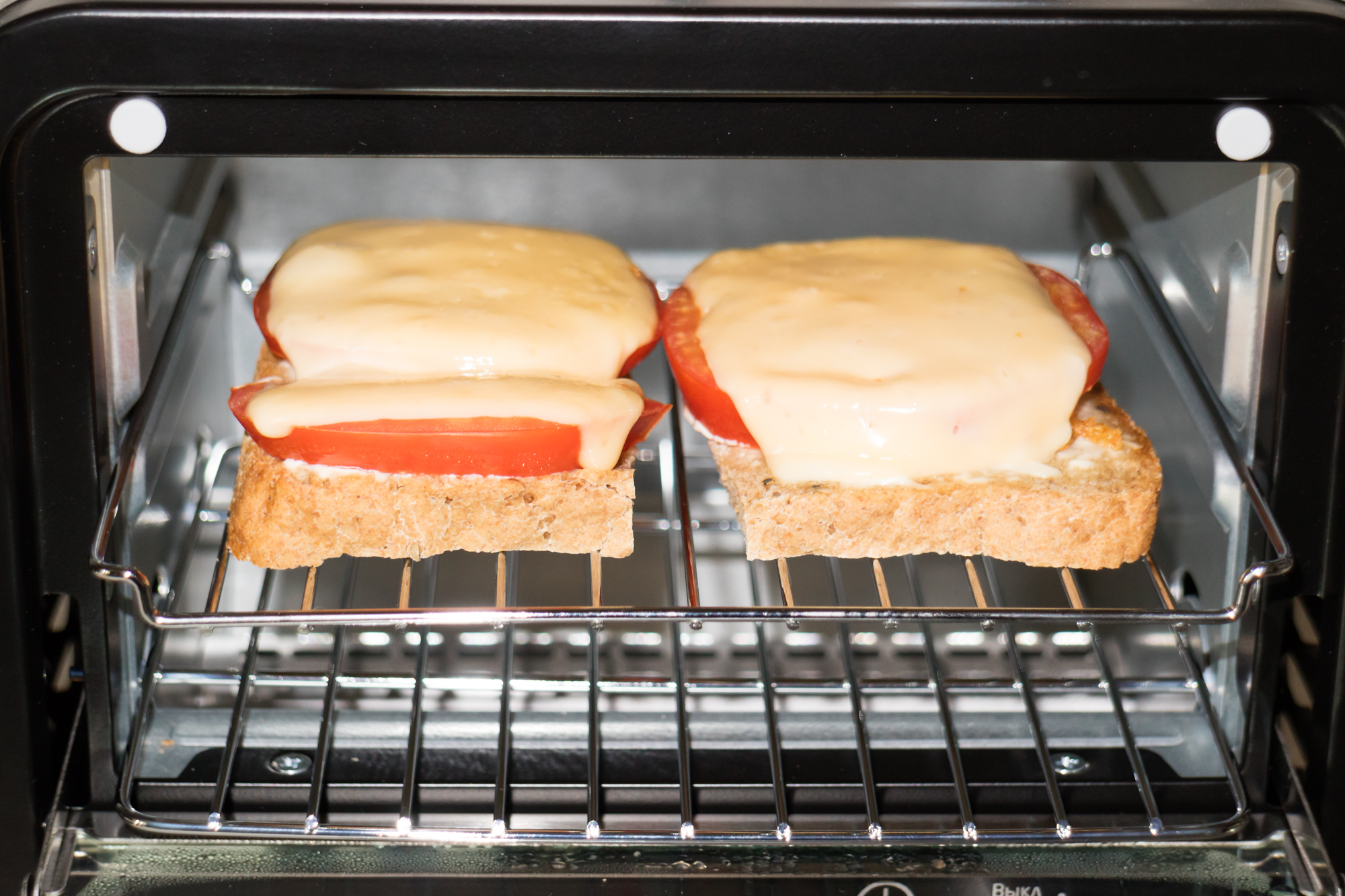 Отличное сочетание хрустящего теплого хлеба и мягкого тянущегося сыра, которое не получить нигде, кроме духовки. Однако обычная духовка может пересушить хлеб, да и для разогрева духовки и приготовления горячего бутерброда понадобится куда больше, чем 5-10 минут.