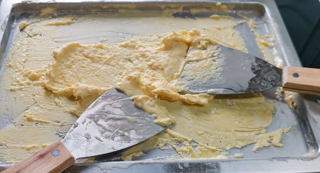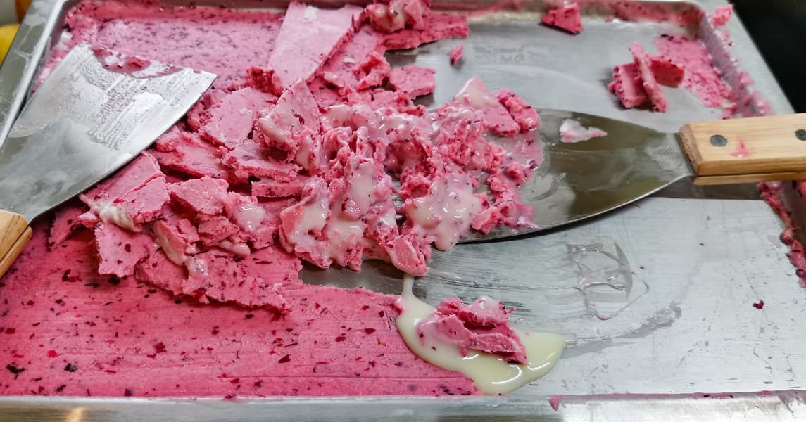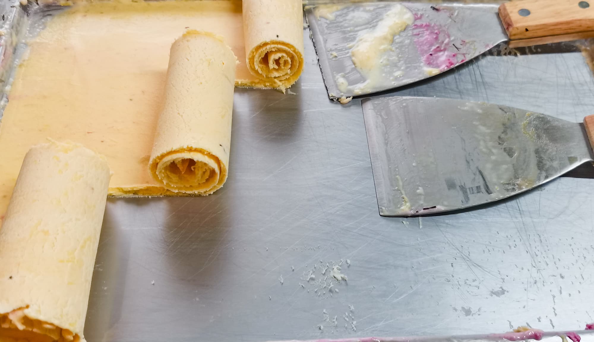 Вследствие вышеописанного довольно нетрудно понять, что все многочисленные советы по приготовлению мороженого-роллов в морозилке на холодном противне не очень удачны, так как хороший правильный ролл с нужной текстурой получается только при постоянном перемешивании в процессе заморозки.