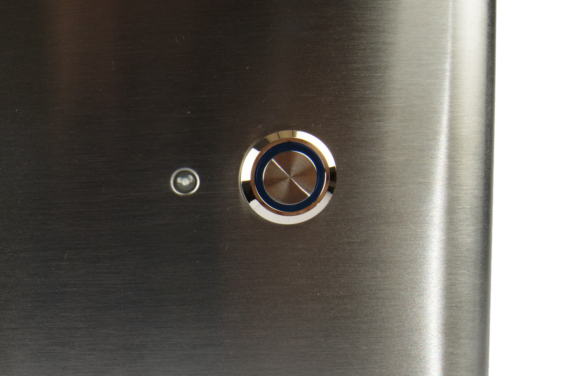 Прибор выглядит как довольно большой куб из нержавеющей стали, посматривающий на обладателя своими приклеенными черными глазками. Глазки отклеиваются без проблем, на корпусе остается только кнопка включения и индикатор работы.