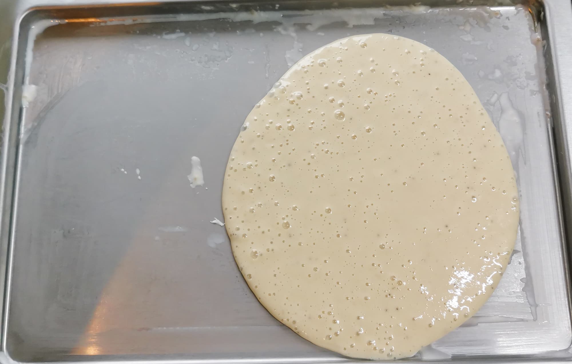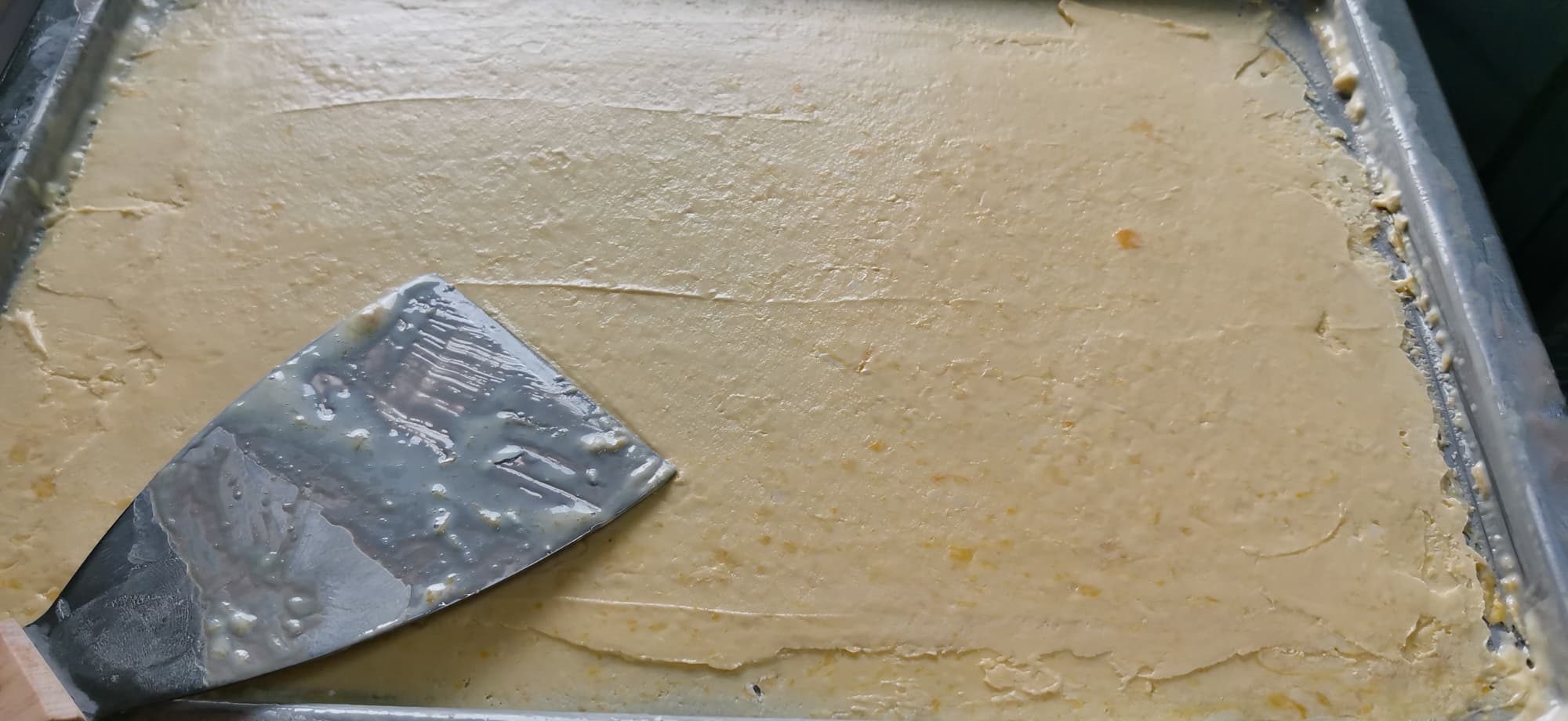 Отмерили приблизительно 200 г смеси. Вылили на поверхность, разровняли.