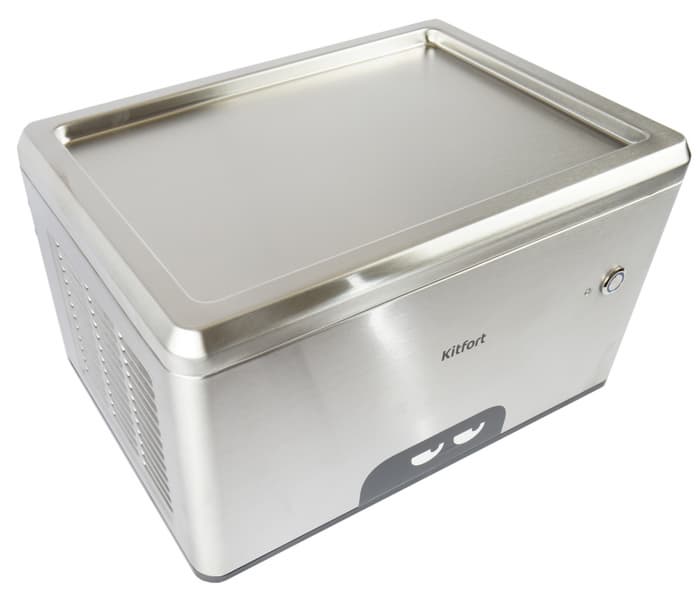 Верх прибора является рабочей поверхностью, которая замораживается с помощью компрессора, находящегося внутри прибора. На верхний морозильный поднос выкладываются продукты или готовая смесь и с помощью шпателей распределяются по поверхности ровным слоем.