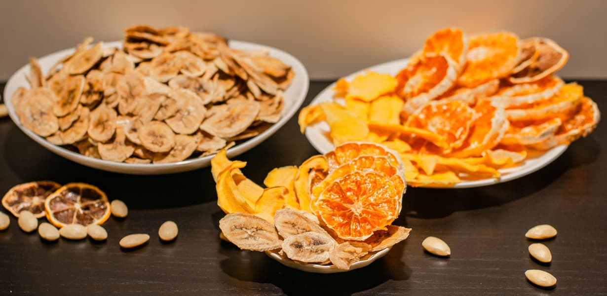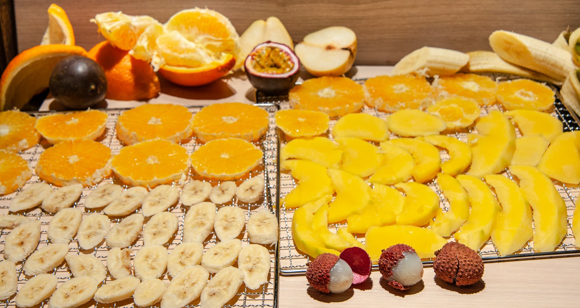 Бананы высохли быстрее всего, дольше всех сушились апельсины, поскольку были порезаны толстыми кусками. Им понадобилось около 16 часов.