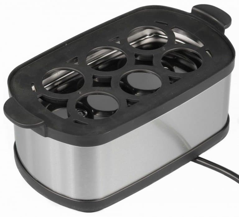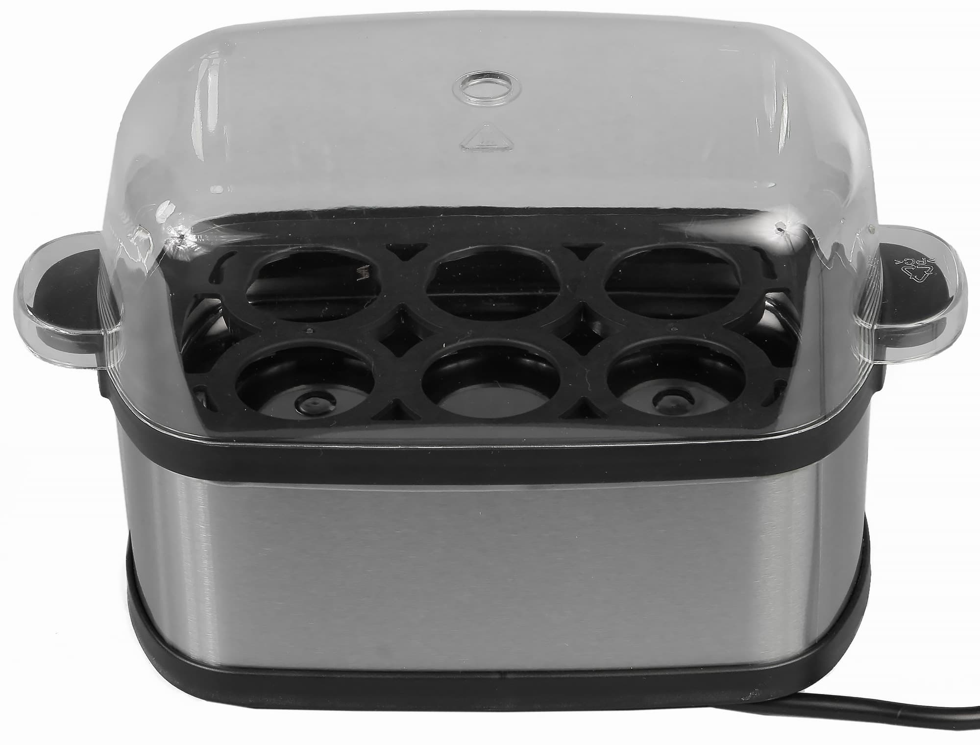 Закрывается яйцеварка с помощью прозрачной крышки, имеющей отверстие для выхода излишков пара. Между крышкой и корпусом прибора можно установить пластиковый держатель на шесть яиц, либо стимер — пластиковую решетку для приготовления на пару́. И крышка, и держатель, и стимер имеют по бокам специальные ручки, с помощью которых их можно с легкостью снять с яйцеварки. Благодаря ручкам можно не бояться случайно обжечься горячим паром, который собирается под крышкой.